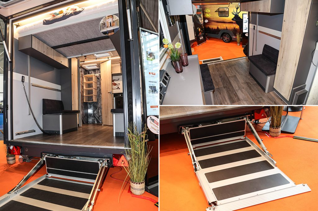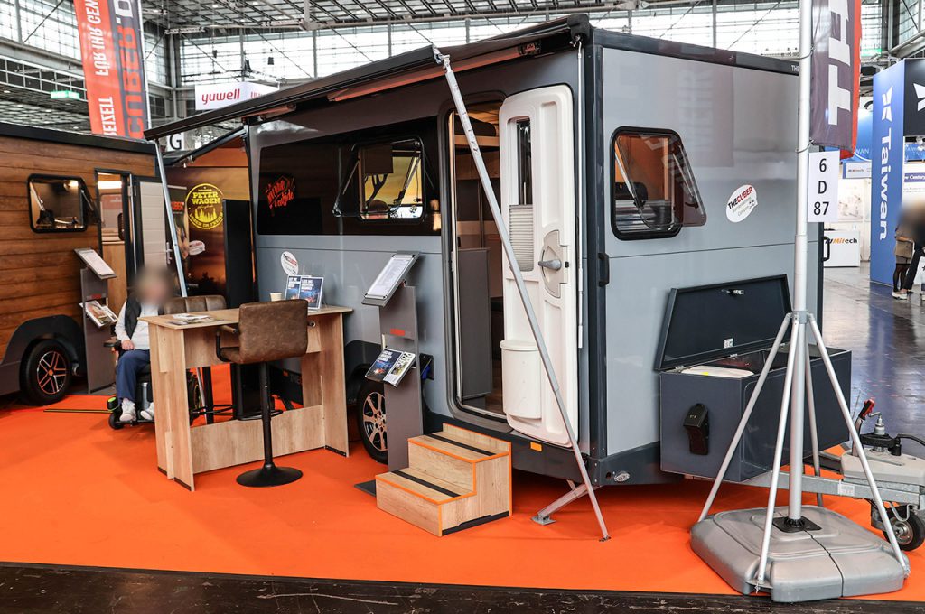 リハケアでは、日常に使えるモビリティの提案が多く見られるが、そこはヨーロッパ。長いバカンスを見据えた、余暇を積極的に楽しむための製品も目に入る。そんな中でも多くの人で賑わい、ひときわ明るい雰囲気を放っていたのが「THECUBER(ザ・クーバー)」のブースだ。このキャンピングトレーラーメーカーの理念は創業以来明確で、「バリアフリー」、「機能性」、「デザイン性」の三位一体。歩行が不自由な人の移動をアシストするにとどまらず、だれもが自由で快適な時間を過ごせることを目指している。