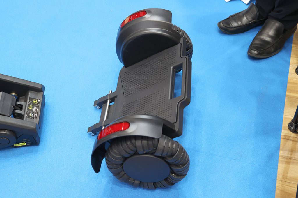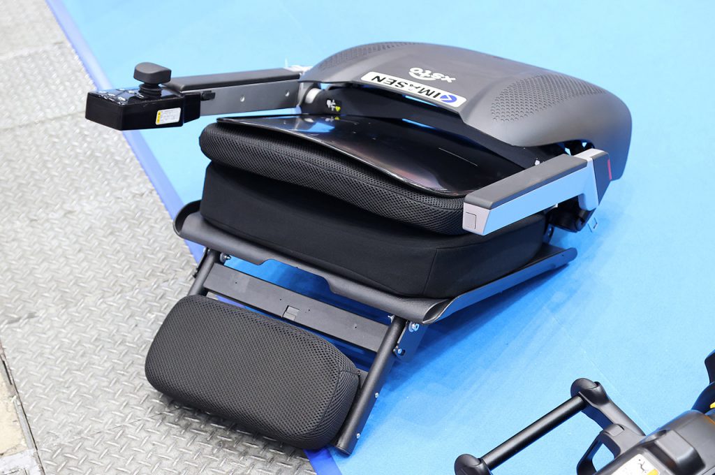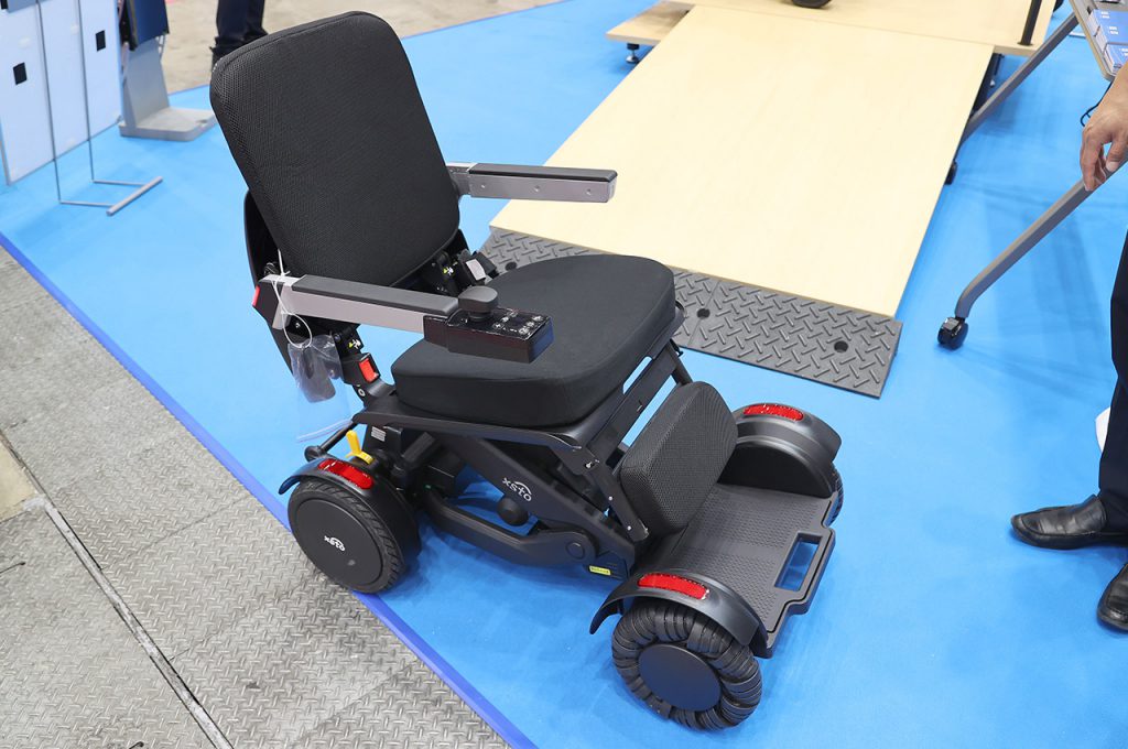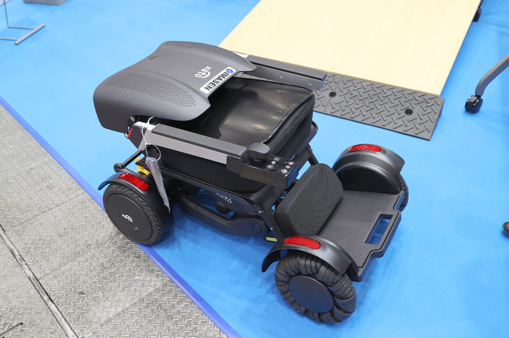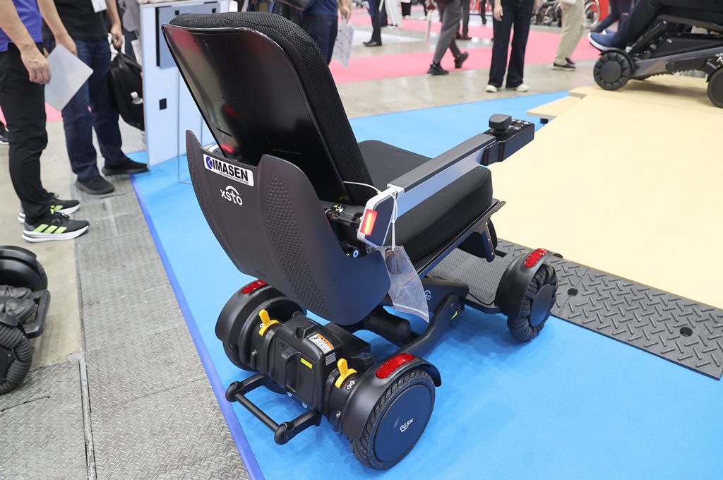 今回、XSTOのX12は総合福祉機器メーカー IMASEN(今仙技術研究所)のブースに展示されていたが、そこにはセルフバランスパワー車いすで、同じくXSTOの「EMC-MR4/M4」も展示されていた。こちらは電動リフト・ティルト機能を搭載しており、座ったまま高い位置の物に手が届き、長時間でも快適な姿勢を保持できる車いすとして人気の高いモデルである。段差乗り越え性能は約50mmで、舗装路から小さな段差まで安定して移動できるため、屋内外の使用に幅広く対応する。本体はコンパクト設計でボディは3分割できる構造で、車両への積み込みや持ち運びを容易にしてくれる。バッテリーも着脱式で、充電や交換が簡単に行え、航続距離は最大15kmと長時間の使用にも対応可能である。
