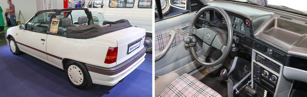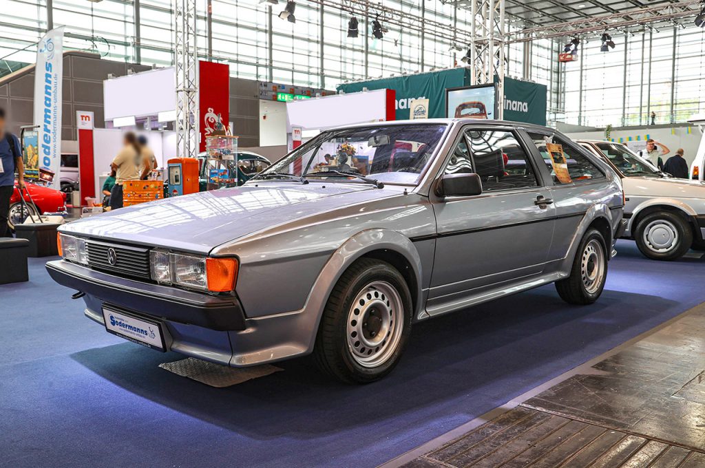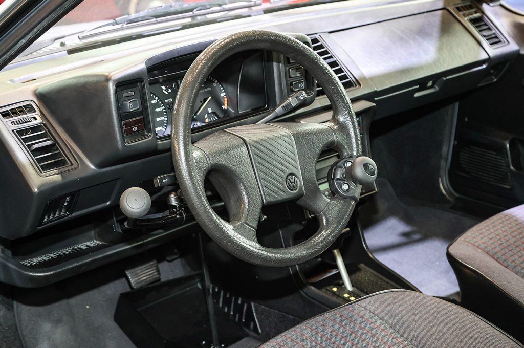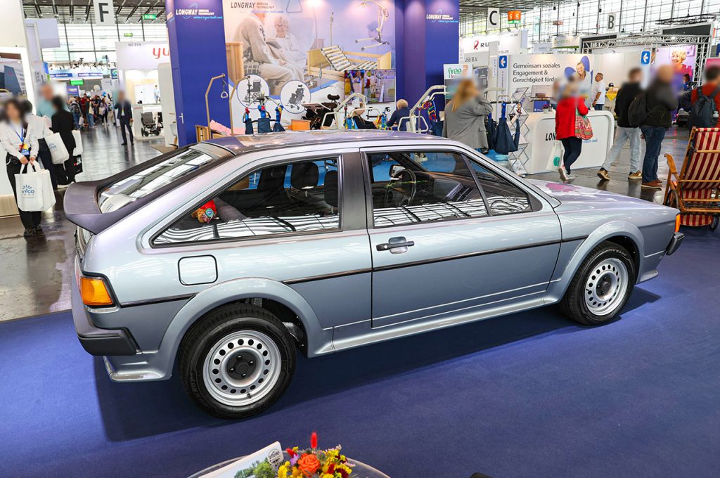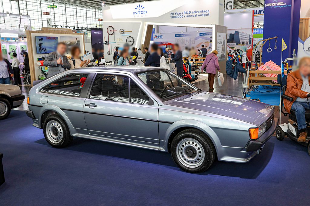 ゴルフをベースにしたスポーティクーペ。展示車両は1989年モデルの2代目。初代のコンセプトを引き継ぎつつ、より空力性能を意識した滑らかなデザインを持つ。4灯式の角型ヘッドライトが特徴的で、スポーティな走行性能で人気を博した。1.8Lで95馬力を発生。走行距離は約14万5000kmで、価格(改造費込み)は2万8750ユーロ(約530万円)。ステアリング補助と手動操作装置、ペダルガードが装備されている。