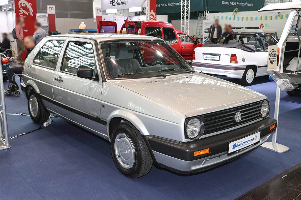 1983年にデビューした2代目ゴルフは、コンパクトながら走行性能のバランスに優れたモデル。展示車両は1991年モデルで、走行距離は約9万km。価格(改造費込み)は2万3950ユーロ(約440万円)。1.6Lエンジンを搭載し、出力は約69馬力。ステアリング補助と手動操作装置が装備されている。